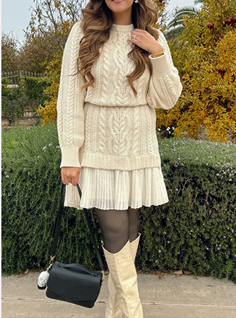 Ich hatte Befürchtungen, dass ein Strickkleid kratzig sein könnte, aber dieses hier ist so weich – wie wenn man sich in eine Decke einkuschelt! Ich hab es beim Einkaufen und zum Kaffee mit Freundinnen getragen und hab mich nie unwohl gefühlt. Die Länge ist auch super – kein peinliches Zurechtzupfen.